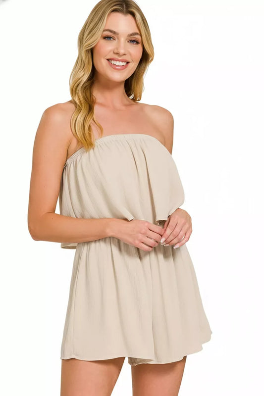 Zenana Tube Top Jumpsuit with Drawstring Waist