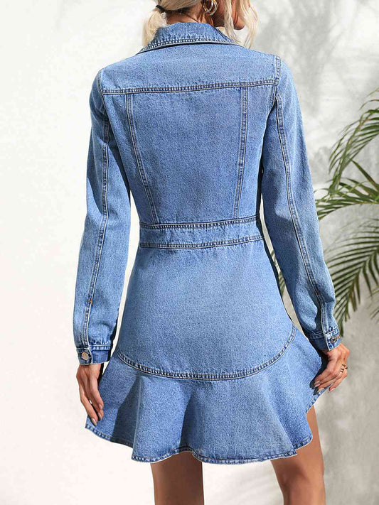Buttoned Turtleneck Long Sleeve Sweater Dress