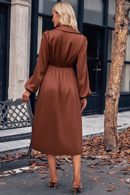 Sold outSurplice Neck Puff Sleeve Midi Dress