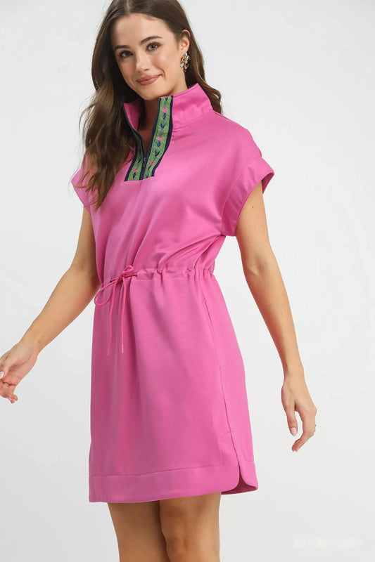 Umgee Knit Zip Front Drawstring Dress