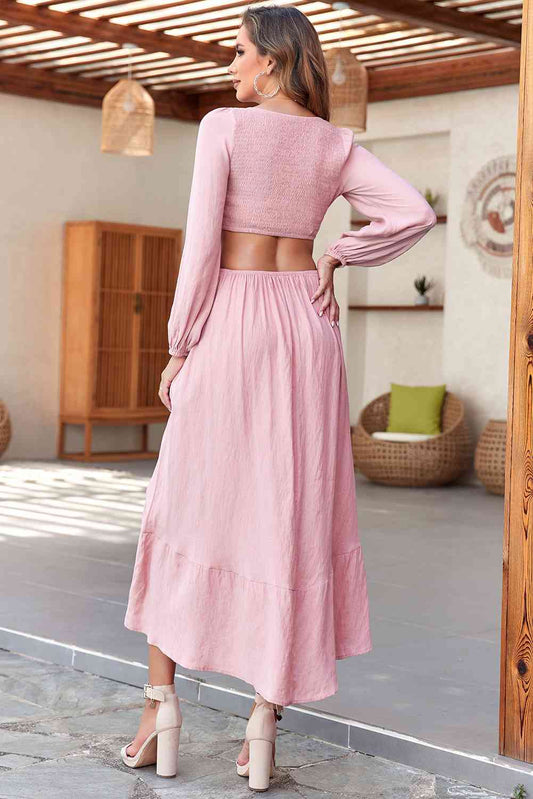 Sold outSmocked Cutout High-Low V-Neck Dress