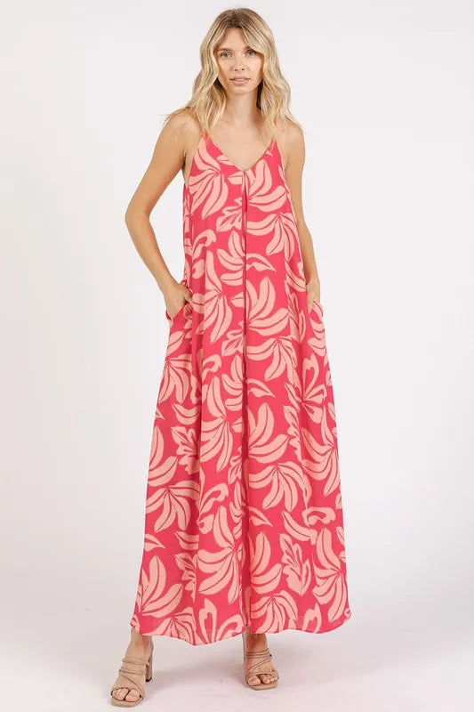 Mittoshop Printed V-Neck Maxi Cami Dress with Pockets