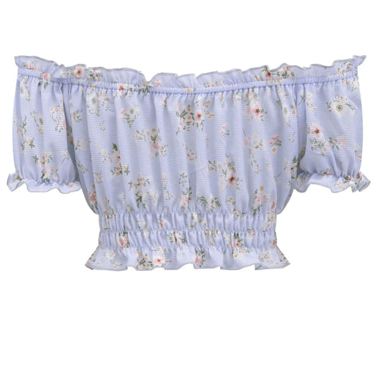 Cropped Off-Shoulder Frill Trim Smocked Blouse