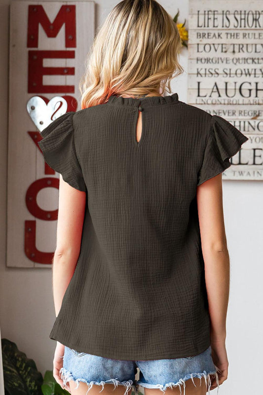 Crisscross Tie Back Flounce Sleeve Cropped Blouse