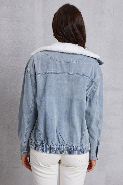 Pocketed Button Up Collared Neck Denim Jacket
