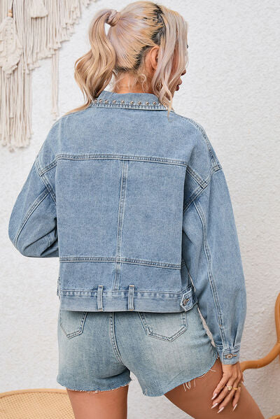 Studded Pocketed Button Up Denim Jacket