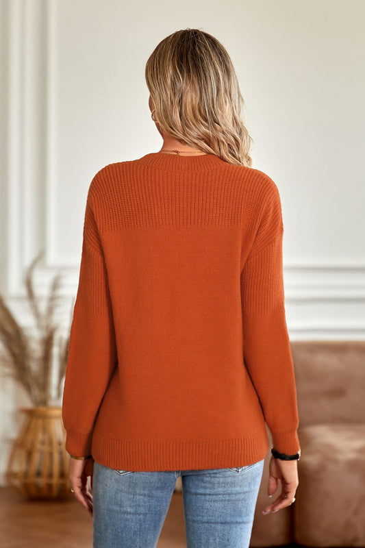 High Neck Balloon Sleeve Rib-Knit Pullover Sweater