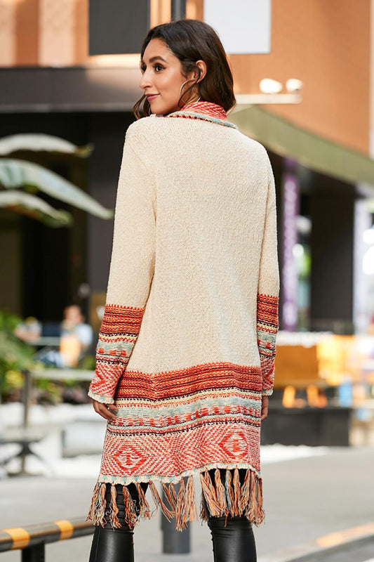 Bohemian Tassel Hem Open Front Duster Cardigan